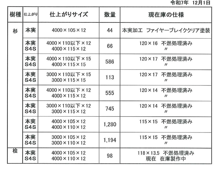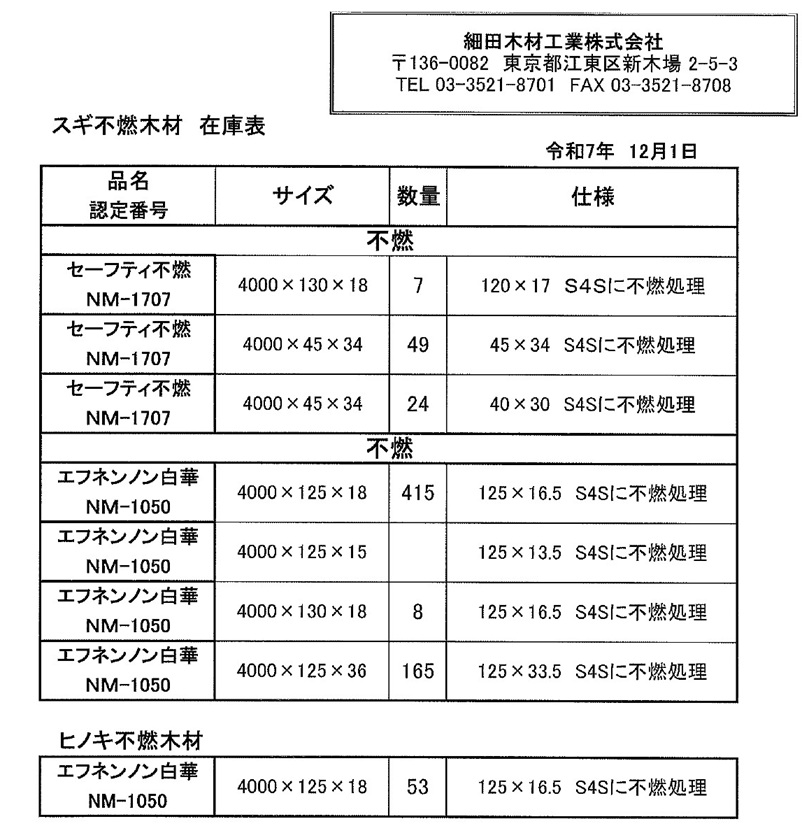また、両拠点には下記のサイズの不燃の在庫もございます。