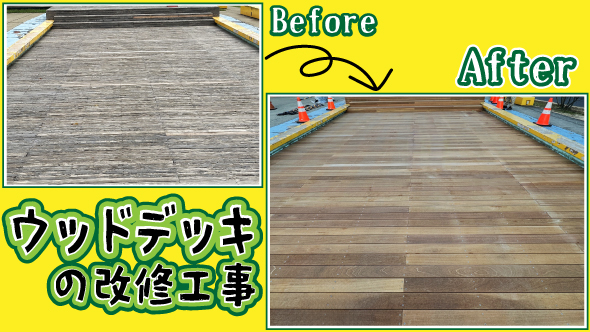 今回は、あるパブリックスペースに設置されているウッドデッキの改修工事のご紹介です。