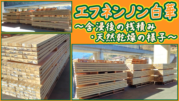 写真は含浸後の桟積み・天然乾燥状態のものです。